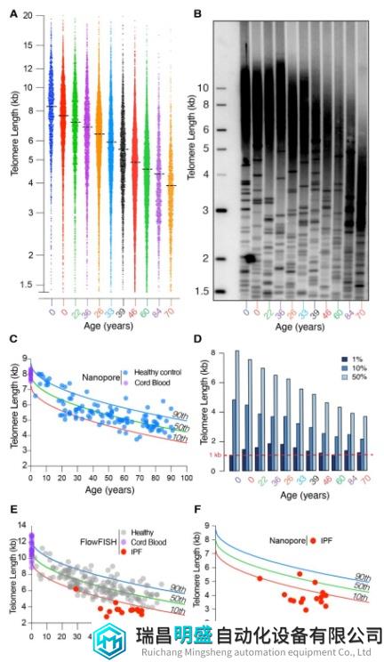 研究团队还将该方法与FlowFISH进行了比较,使用先前诊断为短端粒综合征的特发性肺纤维化(IPF)患者的5μg存档DNA样本进行分析。结果显示,大多数IPF样本的整体端粒长度与FlowFISH测量结果相似,表明Telomere Profiling能够检测出患病个体,有望助力临床诊断和治疗。