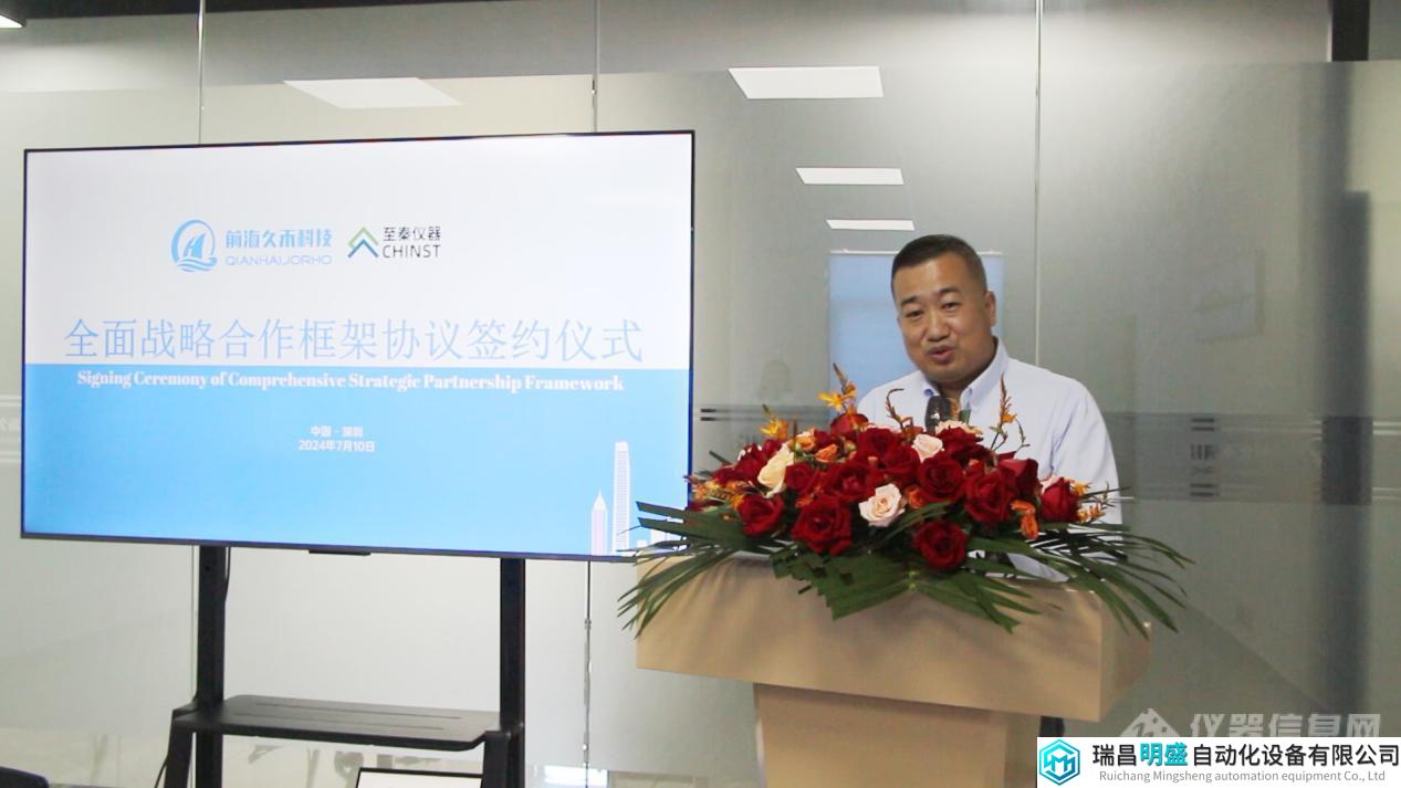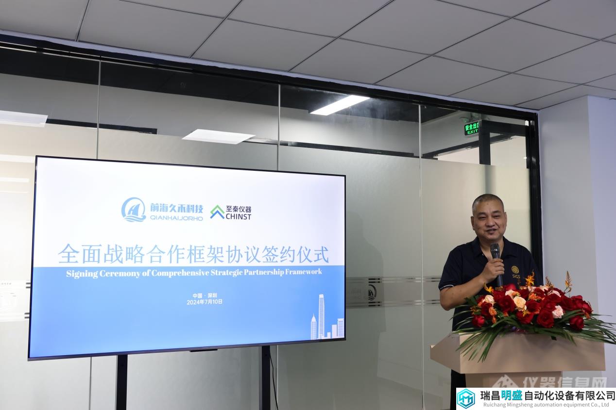 2024年7月10日下午,深圳前海久禾科技发展有限公司(简称:久禾科技)与至秦仪器有限公司(简称:至秦仪器)在深圳市签署全面战略合作协议。此次合作不仅是两家科技企业发展的里程碑事件,更是新能源智能制造领域与精密仪器领域全面深化合作、以新质生产力推动产业高质量发展的典范、也是国内科技公司强强联手主动迎接全球性挑战并布局全球新能源安全检测业务的肇始。